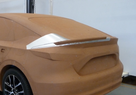 テールゲートスポイラー ダックテールタイプのデザインは、ベルギーにあるホンダアクセスヨーロッパのデザイン部門で手掛けました。私は、2021年のシビックのフルモデルチェンジ時に、欧州のスポーティーなクルマでは定番ともいえるダックテールタイプのスポイラーをつくりたいと考え、たくさんのスケッチを描き、さらにドイツにあるホンダR&Dヨーロッパのデザイン部門の協力を得てシビックの1分の1サイズのモックアップモデルを使って、ダックテールスポイラーのスタイリングを、クレイモデルを削り込みながらデザインを磨き上げていきました。
