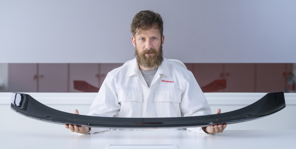 私は、シビックのエクステリアデザインを愛し、エレガントさを志向するオーナーに選択いただけることをイメージして、このダックテールスポイラーをつくり上げました。たとえば通勤で、愛車であるシビックを毎日目にするたびに気持ちが高揚するような、心くすぐるアクセサリーとすることを目指しました。気持ちを高める服を選ぶように、自分の感性に合致し、自分らしさを表現するアイテムとして、このダックテールスポイラーを選んでいただきたいと考えています。