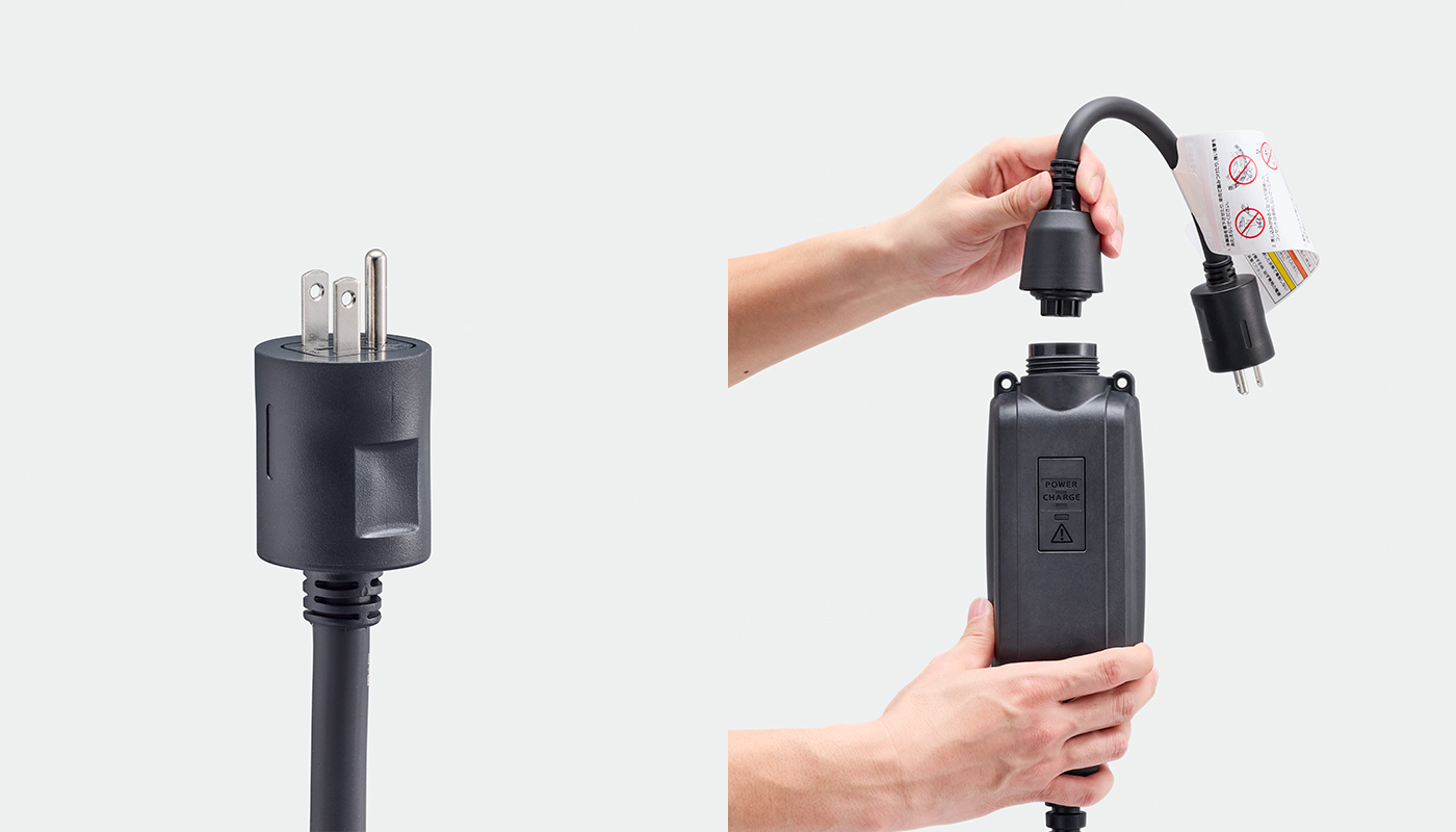 - ※一般的な抜止形100Vコンセントでは、頻繁な抜き差し使用による耐久性が十分でない場合があるため、電動車両充電用コンセントへ接続してご使用ください。