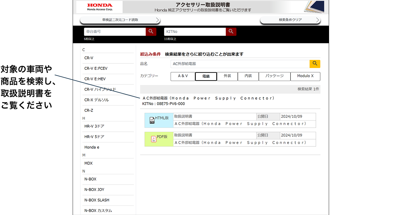 【Honda純正アクセサリー 取扱説明書のご案内】
