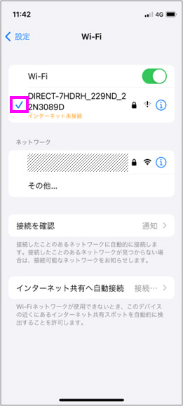 ※「インターネット未接続」と表示されますが、iOSの仕様によるものです。正常動作です。
