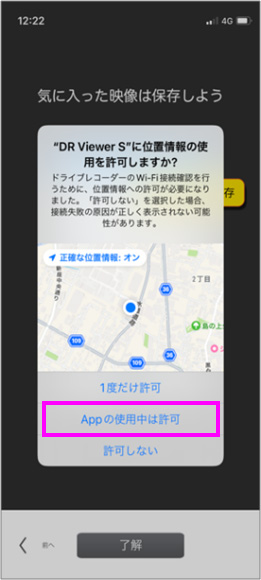 ■「位置情報の使用を許可しますか?」とメッセージが表示された場合は、許可をタップして進めます。