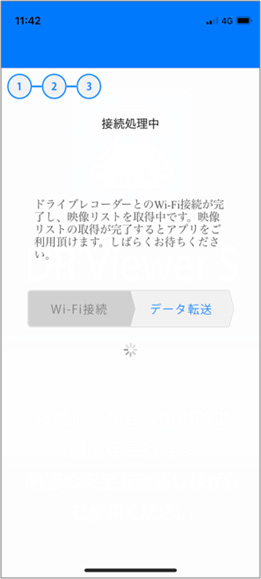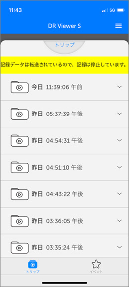 ■ドライブレコーダーと接続されると、「記録データは転送されているので、記録は停止しています。」とメッセージが表示されます。