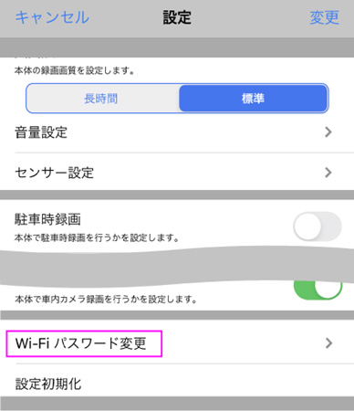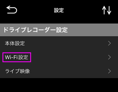 ■ドライブレコーダー設定内の「Wi-Fi設定」をタップします。