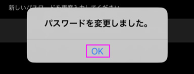 ■「パスワードを変更しました。」と表示されますので、「OK」をタップします。