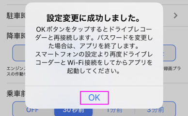 ■「設定変更に成功しました」と表示されますので、「OK」をタップしてください。
