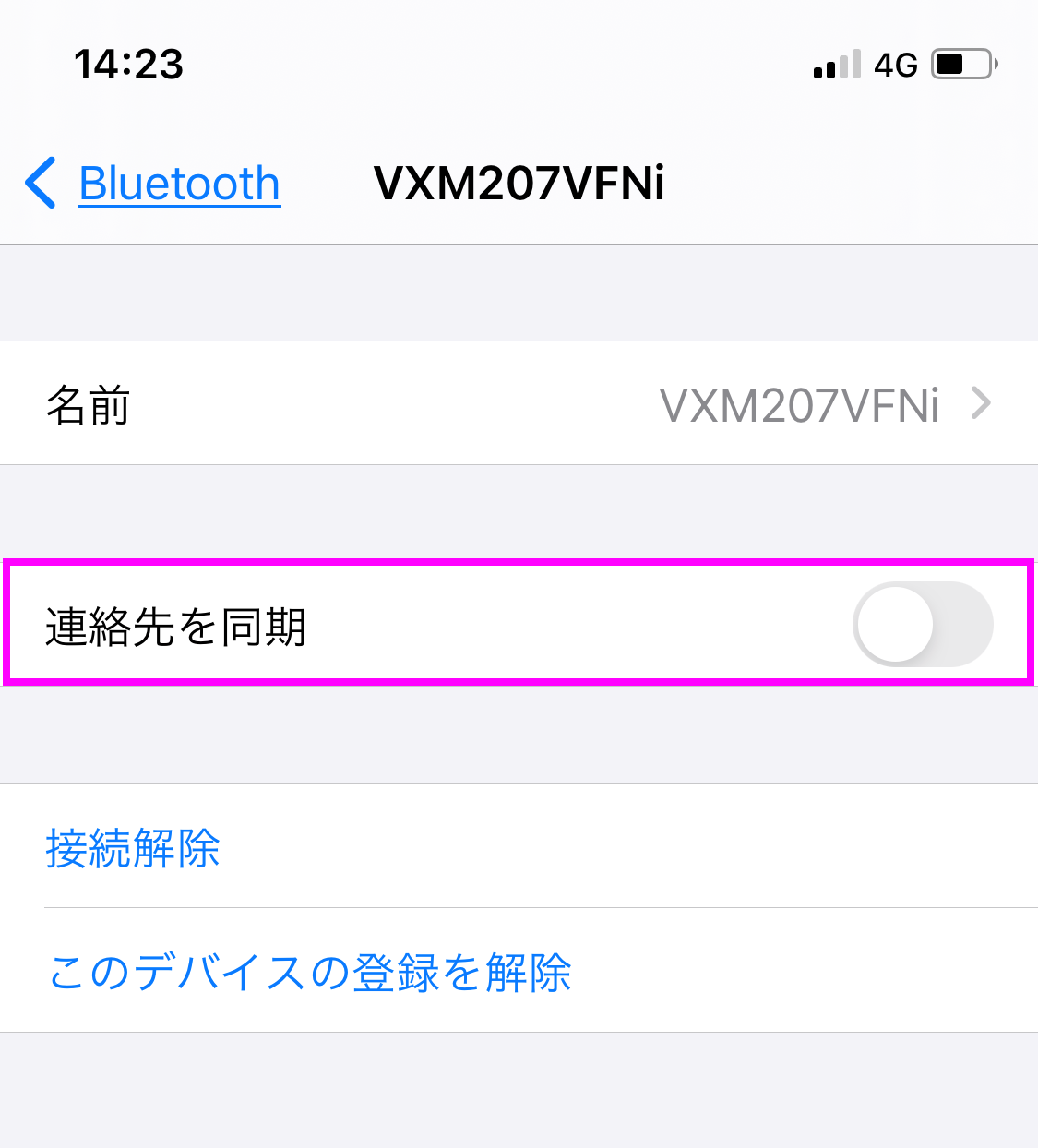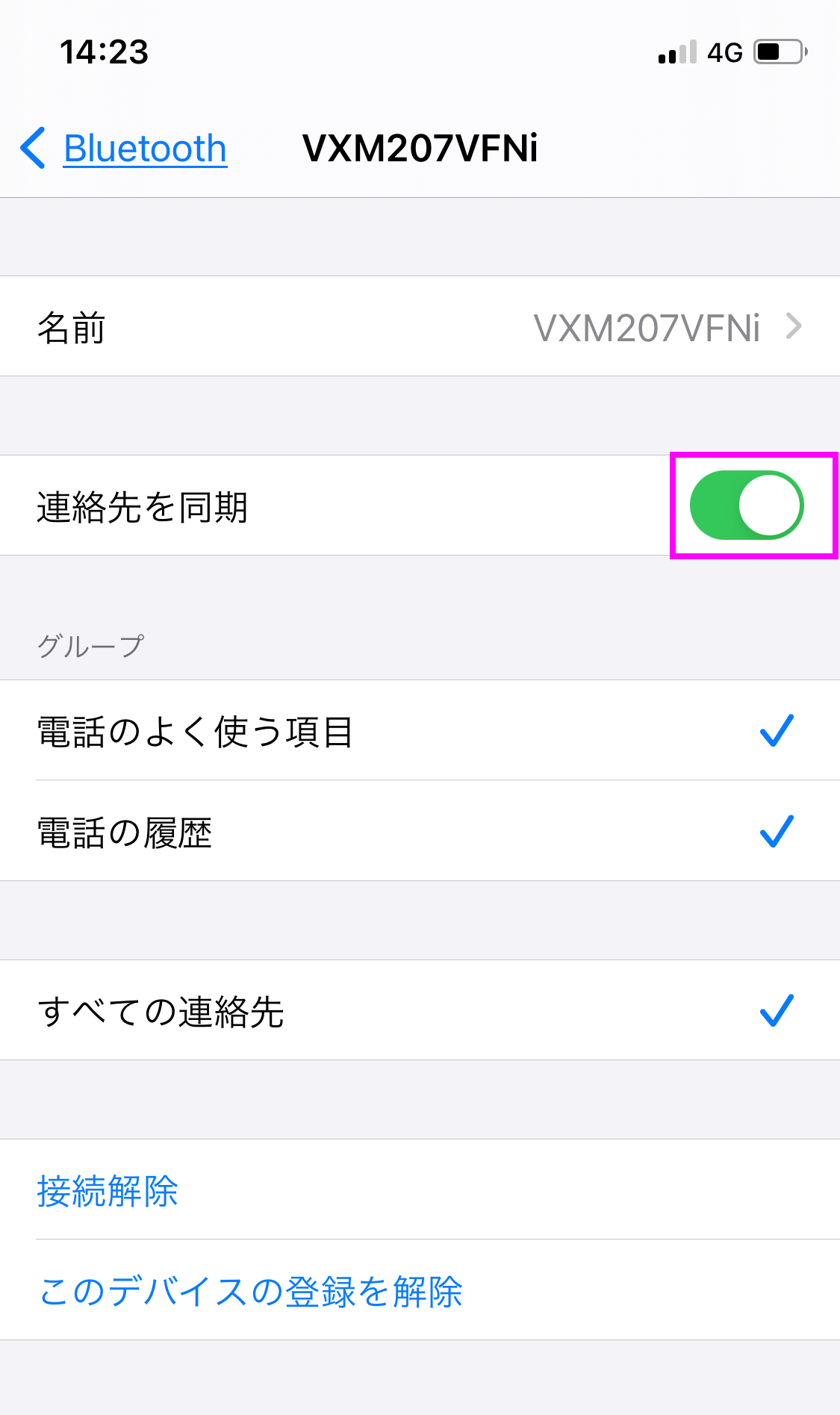 iPhoneのBluetooth設定で、「連絡先を同期」がオフになっている可能性があります。「連絡先を同期」の設定をご確認ください。