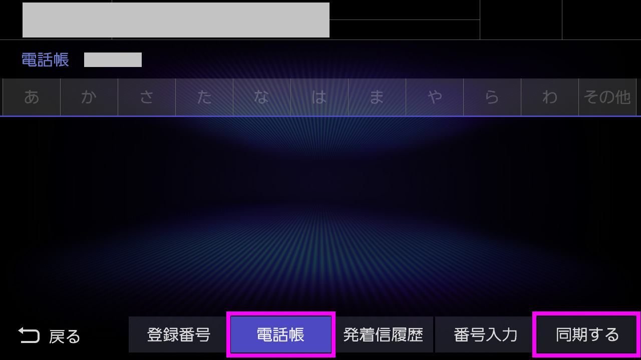 ナビゲーションで電話帳の同期または転送の操作を行ってください。