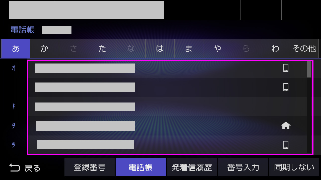 「連絡先を同期」がオフになっている場合は、設定をオンにしてからナビゲーションで電話帳の同期または転送の操作を行ってください。