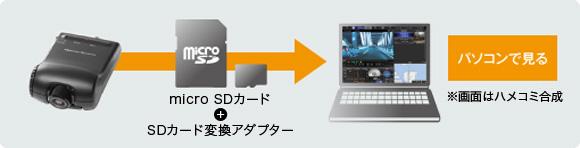 記録した映像はSDカードスロット搭載のパソコンで映像と音声での再生ができます。車速情報の確認や走行軌跡の確認ができます。(一部モデルを除く)