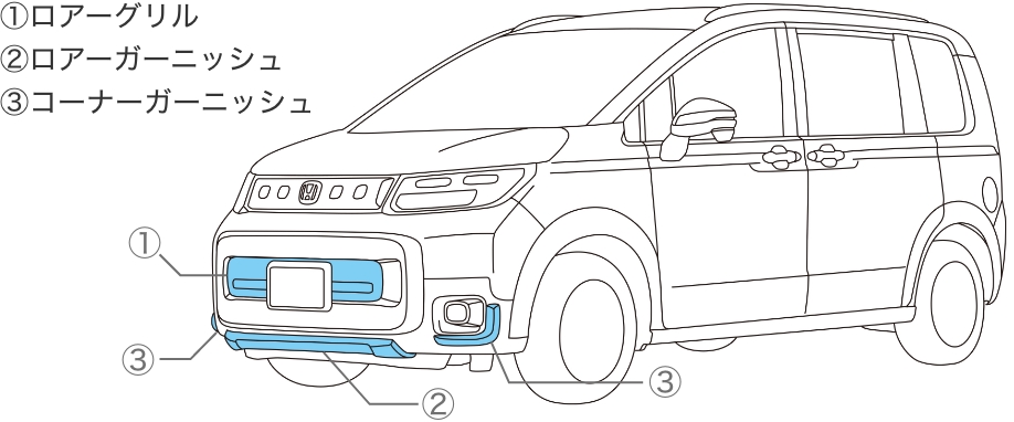 ロアーグリル(ブラック/CROSSTARロゴ付)+ロアーガーニッシュ(シルバー塗装)+コーナーガーニッシュ(シルバー塗装)セット