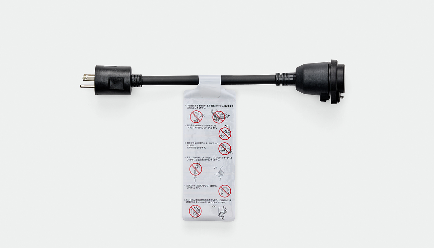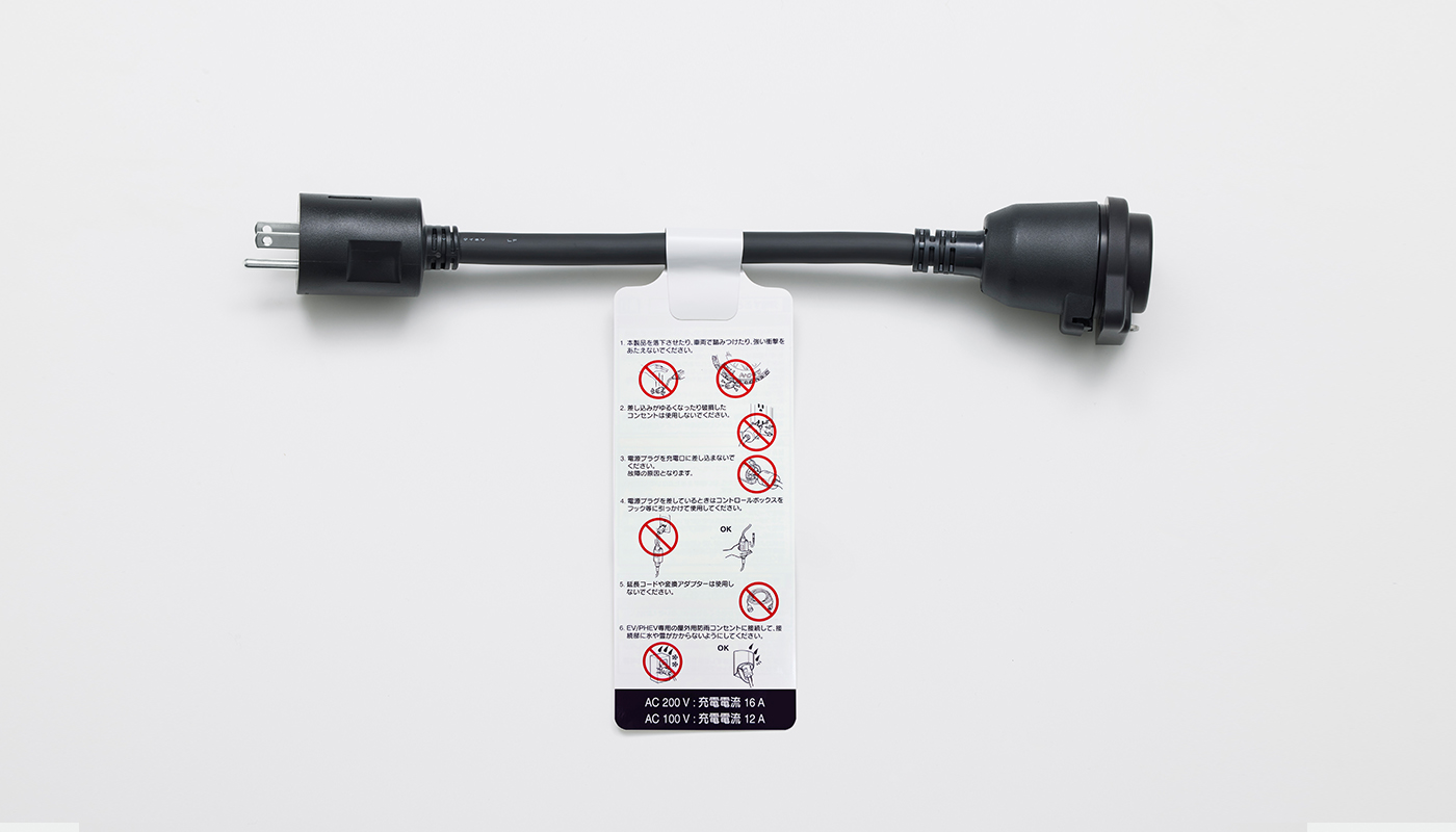 - ※一般的な抜止形100Vコンセントでは、頻繁な抜き差し使用による耐久性が十分でない場合があるため、電動車両充電用コンセントへ接続してご使用ください。