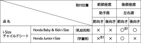 - ※取り付けるチャイルドシートの位置およびお子様の体格により、取付方法が異なりますので、詳しくは販売会社にご相談ください。