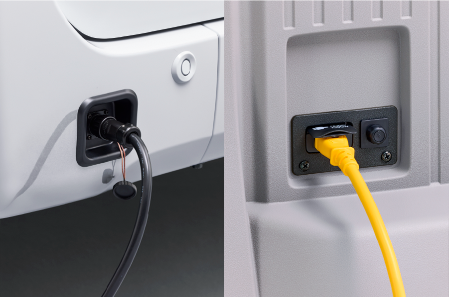 AC外部給電器を組み合わせれば、EVから電気を取り出して、車内のコンセントで家電が使えます。