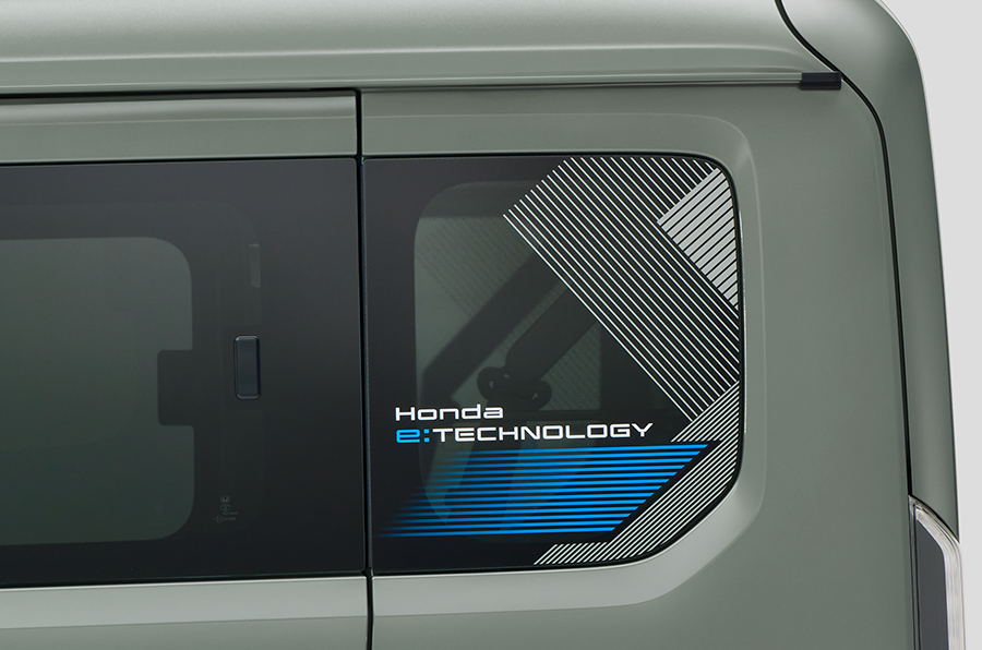 荷室の窓に貼るデカール。幾何学模様のデザインで、EVであることをスタイリッシュにアピールします。
