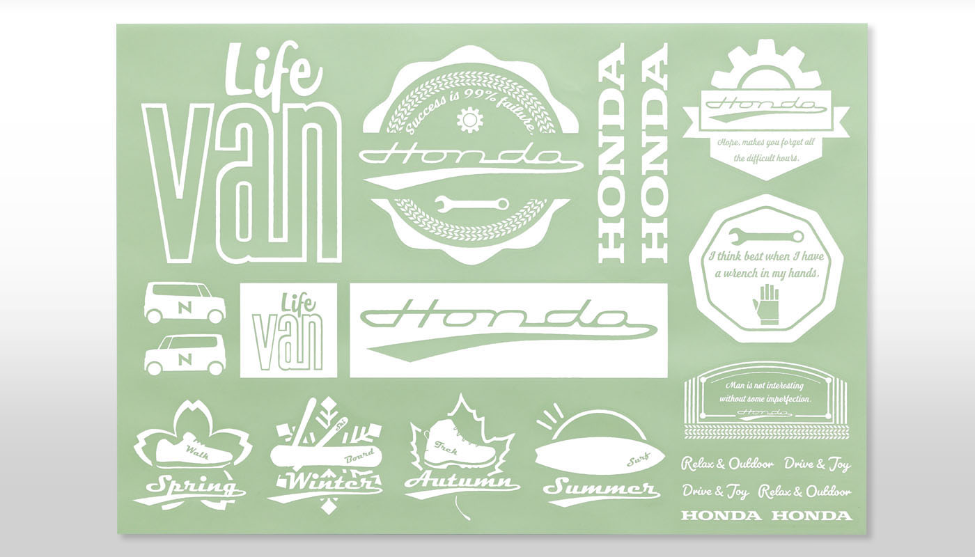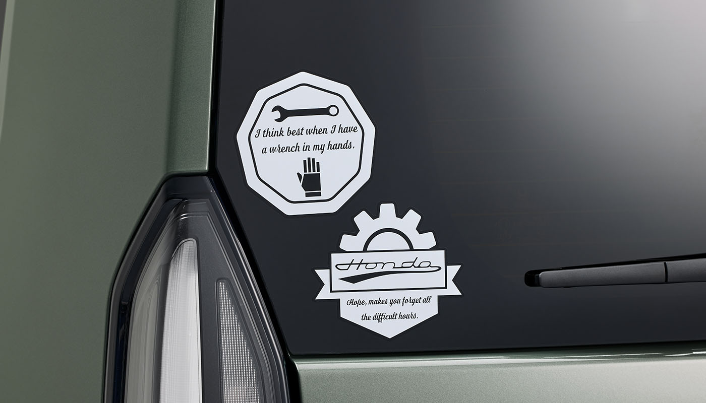 - ※道路交通法により貼れない場所(ウインドウガラス面、灯火器部など)と、仕様上貼り付けられない場所(曲率のきつい場所、段差のある場所、なめらかでない場所、車両機能(Honda SENSING等)に影響が出る場所)があります。詳細については取扱説明書でご確認ください。
