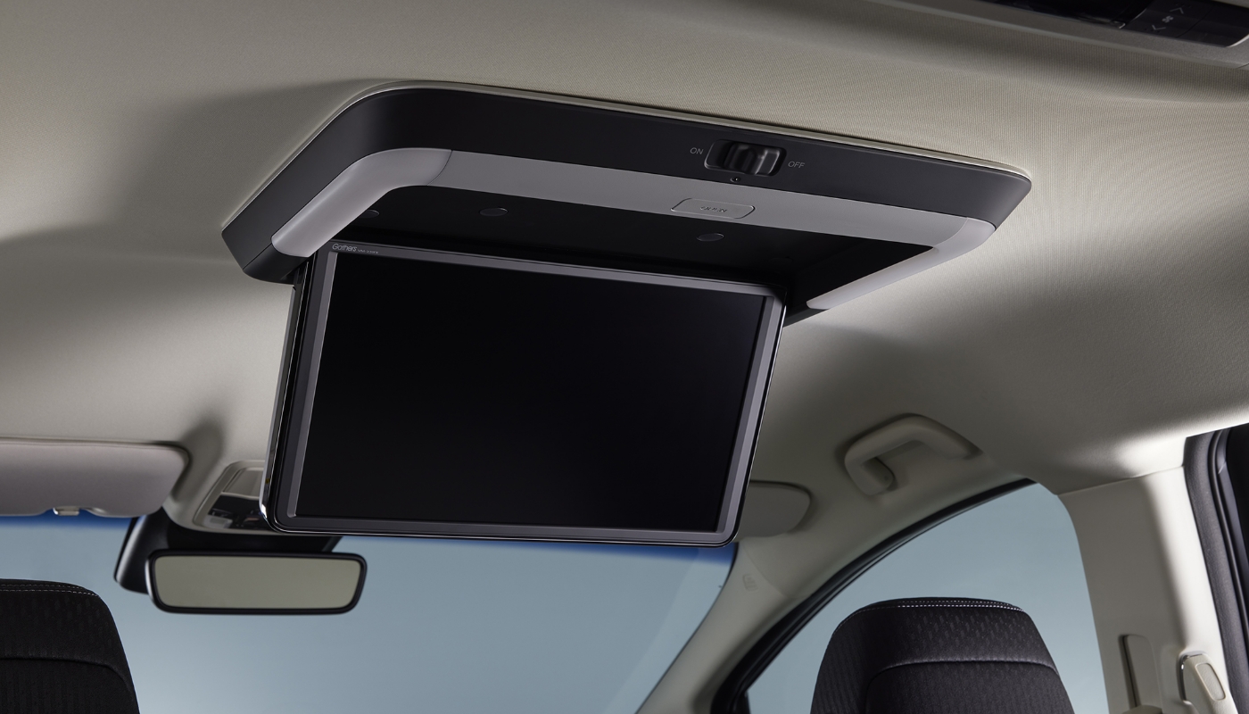 迫力の12.8インチFull HD液晶モニター採用により、走行中でも後席で地上デジタル放送などの映像を楽しめます。