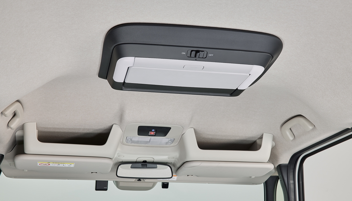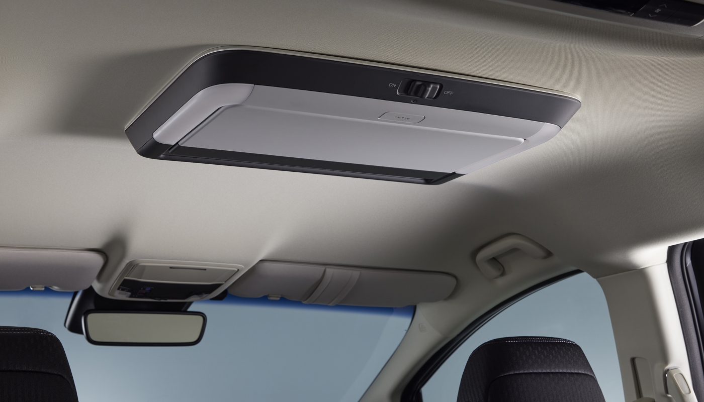 - ※リア席モニターを開いた状態ではルームミラーの後方視界が一部さえぎられる場合があります。その場合、リア席モニターを閉じて後方確認をおこなってください。