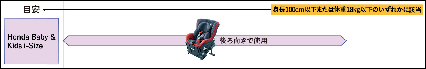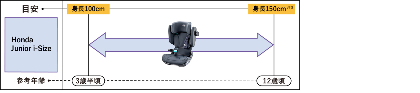 - ※後席でご使用いただけるお子様の身長は100cmから105cmになります。