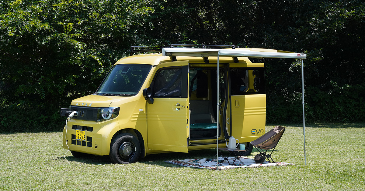 HondaのEV「N-ONE e:」「N-VAN e:」では、純正アクセサリーの給電アイテムを使い、クルマに蓄電された電気をAC100V/最大1500Wで取り出してアウトドアレジャーに使うことができます。火を使わず電化製品も活用することで、安全に手軽に楽しめるアウトドア提案をします。