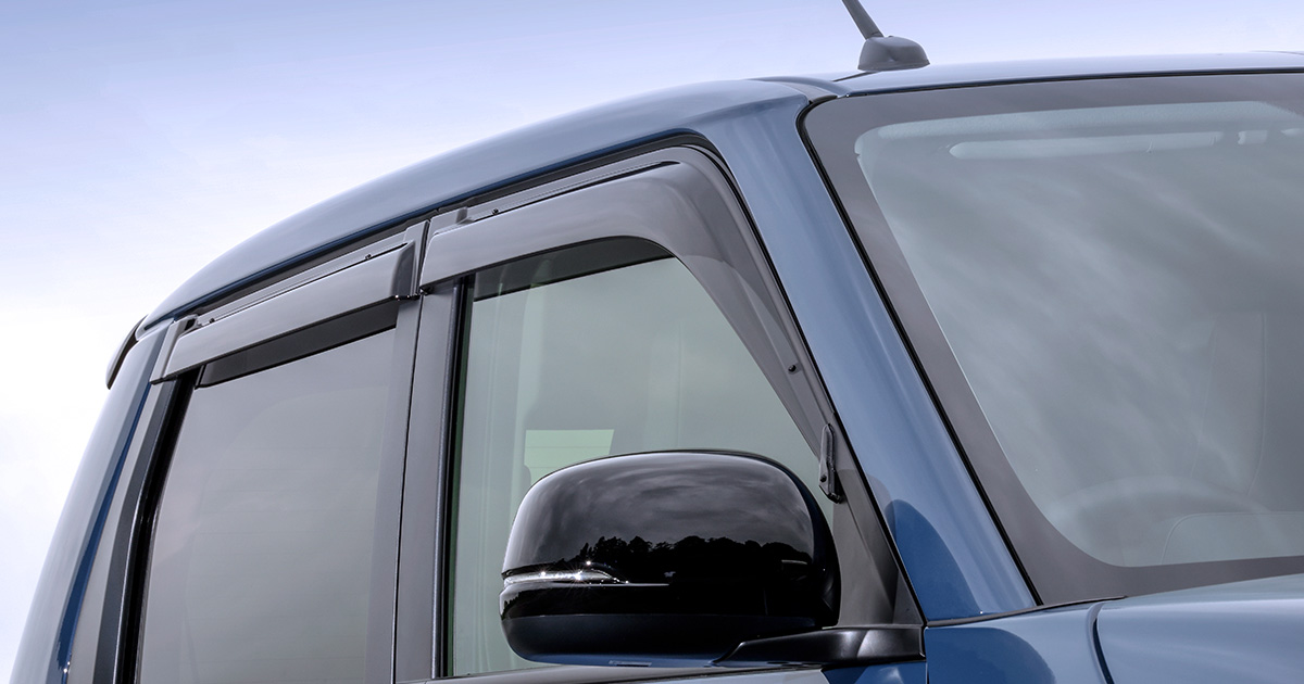 N-ONE e:用の「ドアバイザー」は、使用済み自動車から回収して、再生したリサイクルアクリル樹脂を採用することで、CO2排出量削減と環境負荷低減を目指したアイテムです。