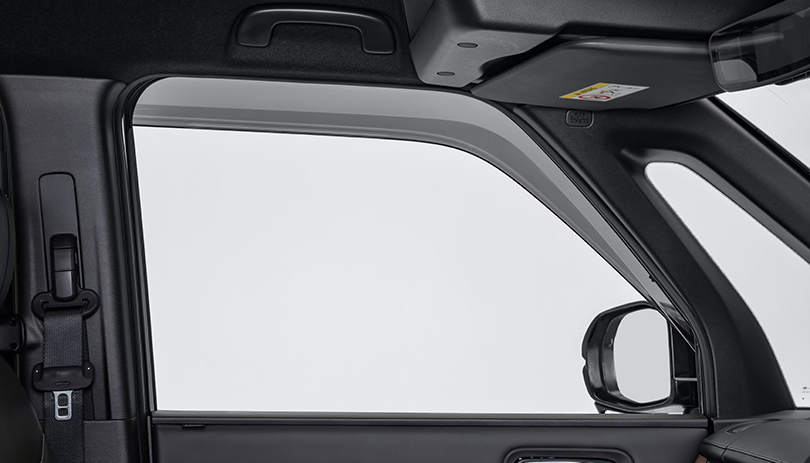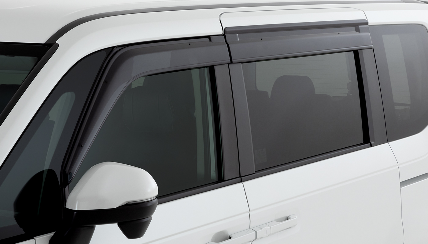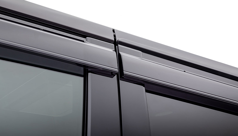 風切り音を極力抑えたドアバイザー。雨天走行時でも少し窓を開けて換気ができます。