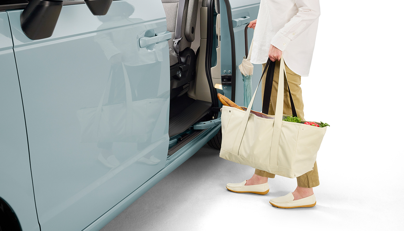 両手がふさがっていても、足先をかざすとスライドドアが自動で開閉。