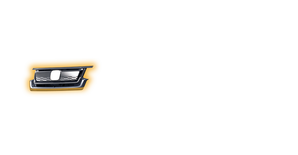 フロントフェイスをよりいっそう精悍にする、メタリック基調のフロントグリル。さりげないハニカム柄をアクセントにあしらい、所有欲を高めるこだわりを細部まで追求しています。