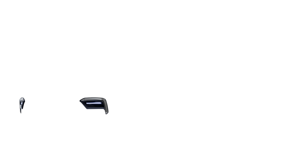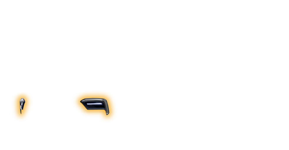メタリック基調とLEDビームライトが、フォグライトガーニッシュの存在感を放ち、ワイドで低重心な印象を強調。フロントフェイスに力強さを与えます。