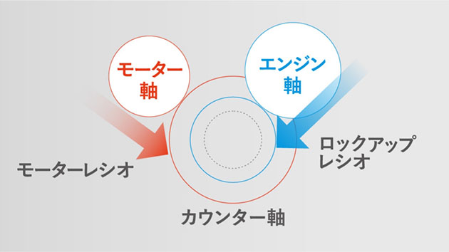 モーターによる滑らかでパワフル、レスポンスのよい走りを実現しつつ、モーター走行とエンジンドライブそれぞれ個別にギアレシオを設定することで、走行性能と静粛性を高い次元で両立しています。