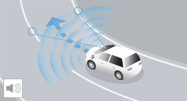 高速道路や自動車専用道路(一部を除く)を走行中、高車速でカーブに進入するおそれがある際、道路状況と自車の走行速度に基づいて警報音を鳴らすとともに、二段階で減速を行うことで、カーブ路外逸脱の抑制を支援します。