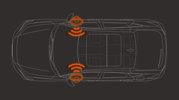 広い水平画角のフロントワイドビューカメラと前後8つのソナーセンサー、レーダーで、万が一に備えを。