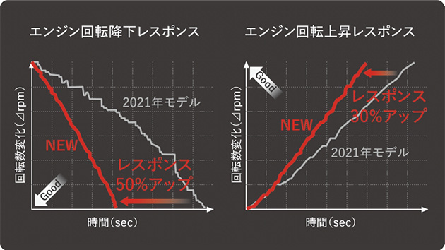 ドライバーのアクセル操作に応じて、エンジンを速やかに始動し発電、レスポンスのよい加速を実現します。