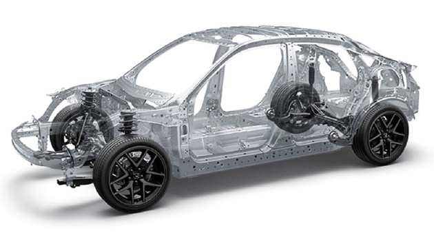 フロントフードをアルミ製とする他、1180MPa級の超高張力鋼板を採用するなど、軽量材の活用を推進し、走りの軽快感を高めています。