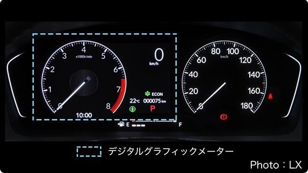 EX、RSには10.2インチ、LXには7インチのデジタルグラフィックメーターを採用しています。
