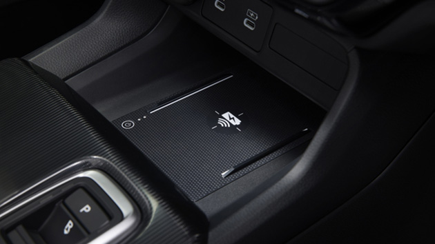 Qi(チー)規格対応のスマートフォンなどを置くだけでワイヤレスで充電可能。