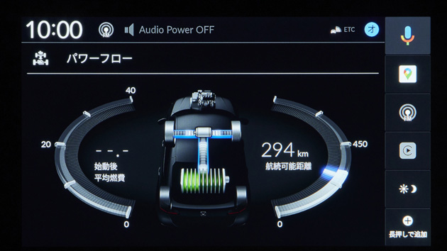 スピードメーター中心部の表示に加え、Honda CONNECTディスプレーでもパワーフローをリアルタイムで確認できます。