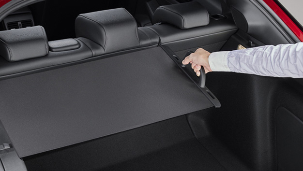 巻き取り型のカーゴエリアカバー。扱いやすい横引きタイプ、取り外すことも可能です。