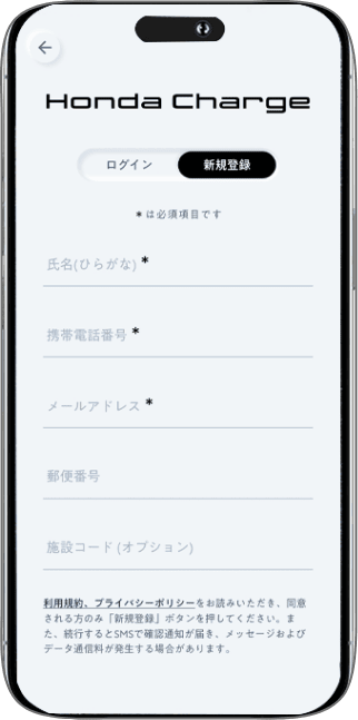Honda Chargeアプリから会員登録ができます。