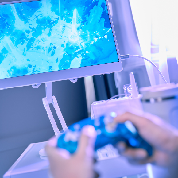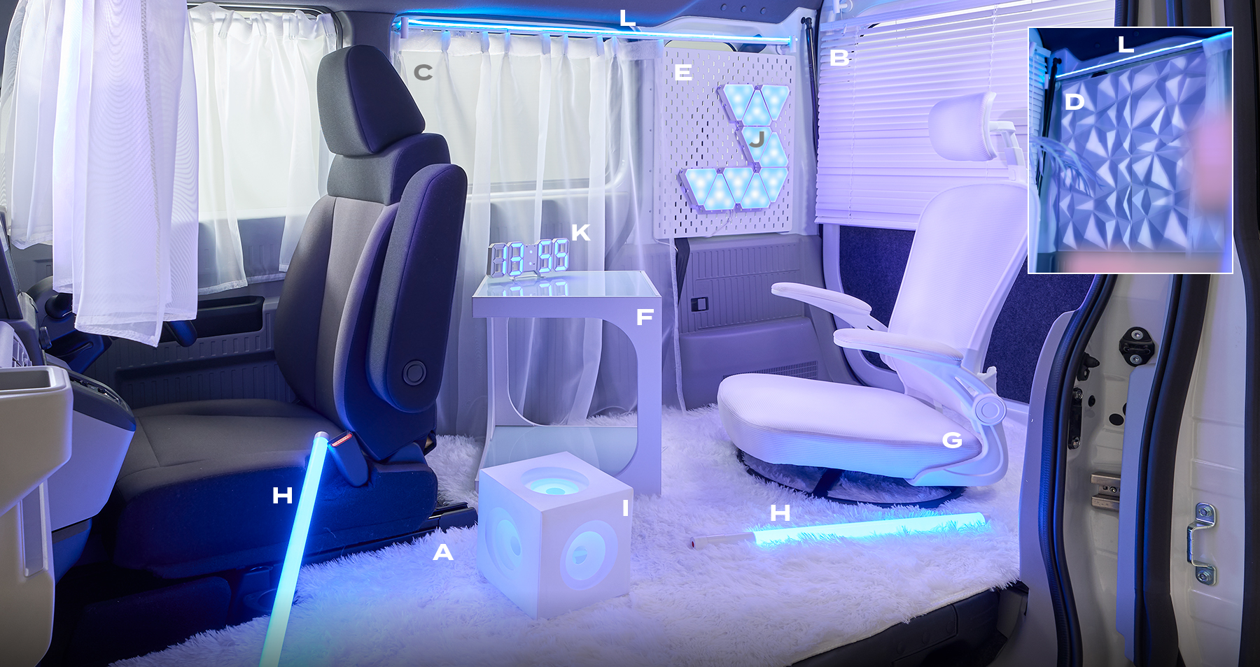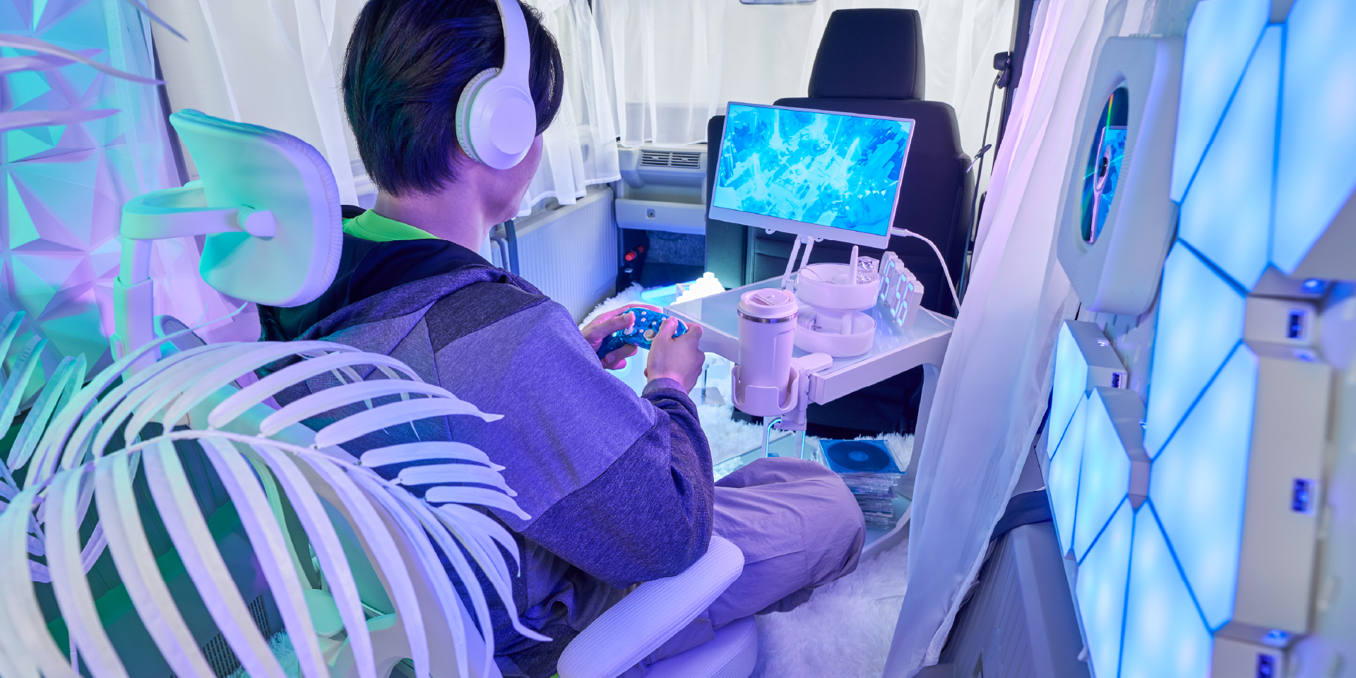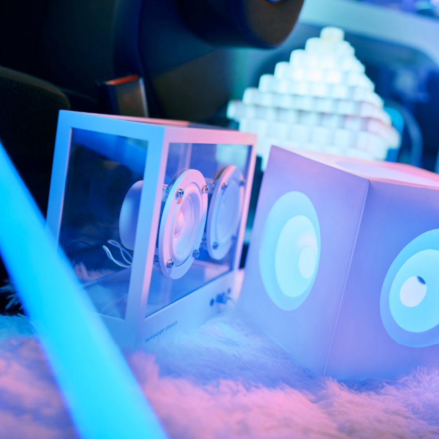 無機質な白に、ネオンライトが光り輝く、SF世界のサイバー空間。ゲーミングの興奮を増幅させ、ストリーミングのバックで映える。テクノのビートを鳴らせば気分がアガる。デジタルと生きる人のセンスをゆさぶる。