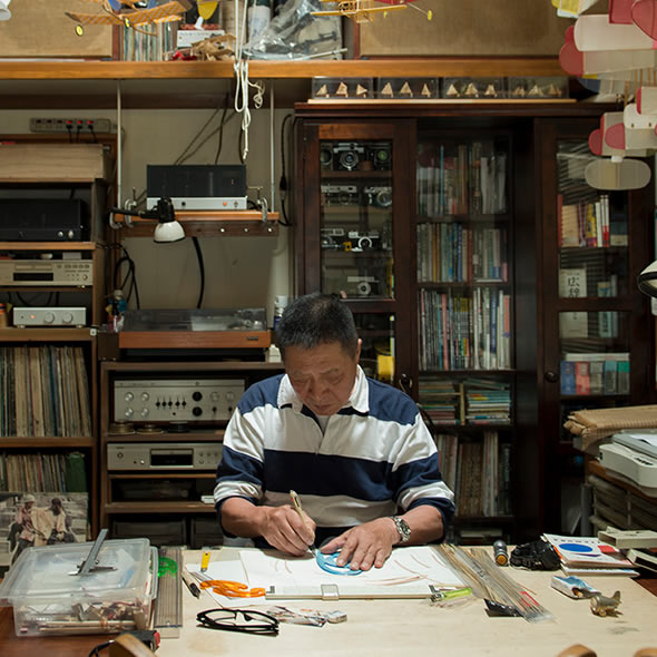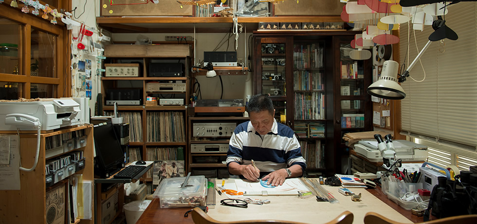 「必要なものはなんでも、自分たちでなんとかした」。戦後間もない時代に生まれた阿部和孝さんと千里さんご夫婦の生活は、チャレンジ精神に溢れている。ものづくりを趣味としてきたため、自宅の書斎には手づくりの模型飛行機から自転車、修理して使っているアンプ、Hondaの小型二輪車「モンキー」まで、あらゆるものが所狭しと並ぶ。