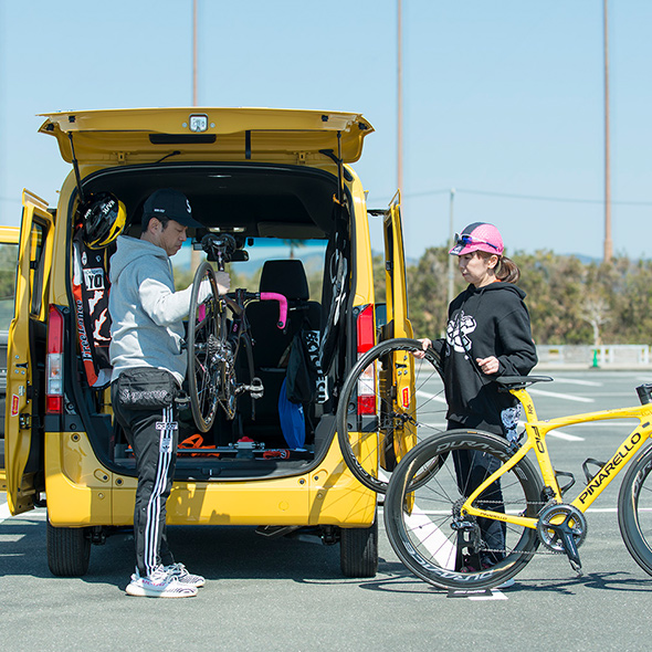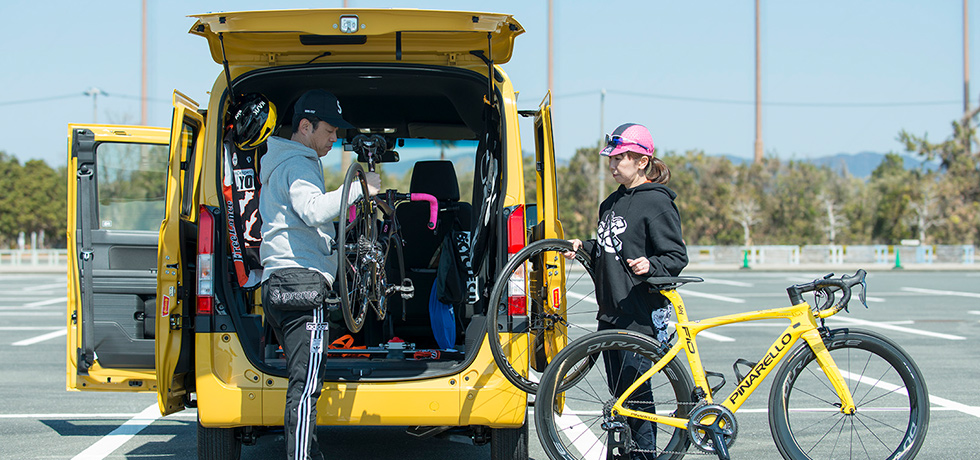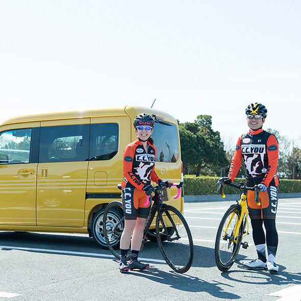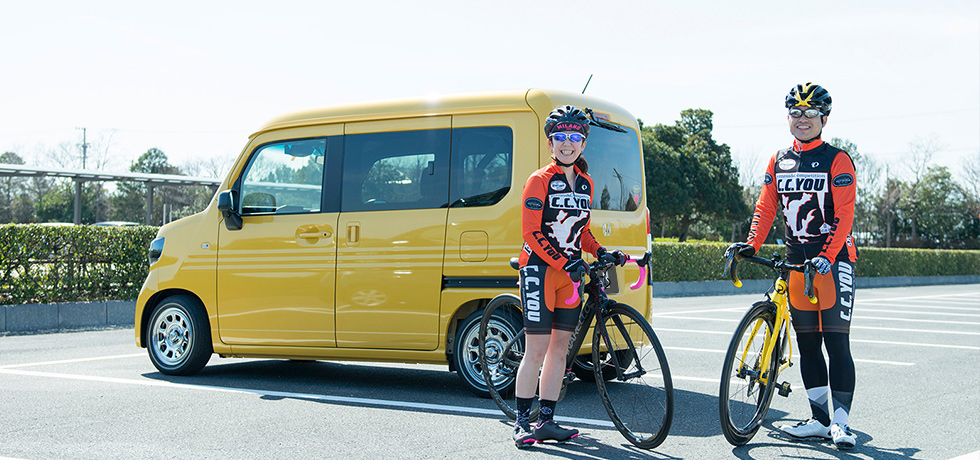 一方、敦子さんは、大切なロードバイクを安心して運べる、N-VANの広々とした大容量の空間が気に入っているという。「シートを倒して荷室をフラットにすれば、2台のロードバイクが余裕で乗せられます。助手席側にセンターピラーがなく、出し入れしやすいところも便利ですよね」。