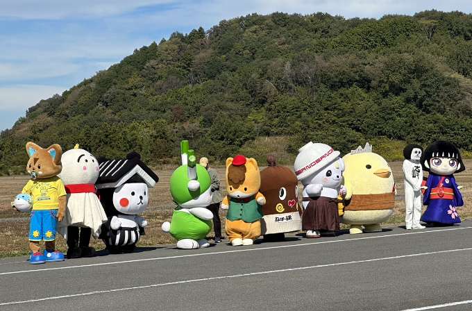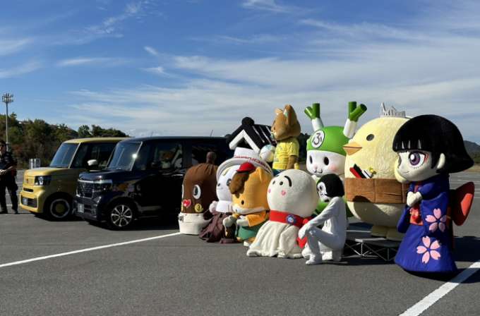 2023年10月に実施した特別試乗会に訪れた10体のご当地キャラたち。