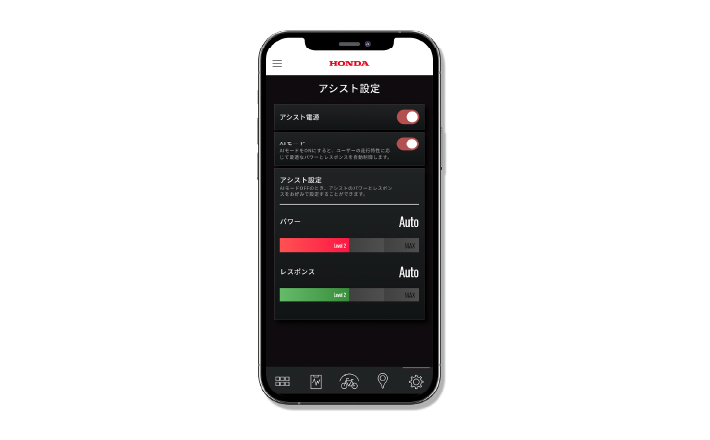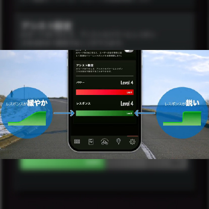 SmaChariアプリからアシストやレスポンスのレベルを自在に調整可能。自分の好みに合った乗り味を実現します。
