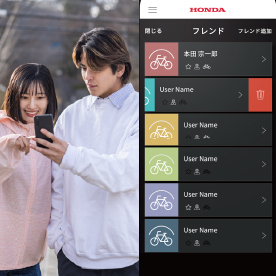 お互いに登録したフレンド間で位置情報や車両の共有ができます。待ち合わせや見守りに役立つ機能です。