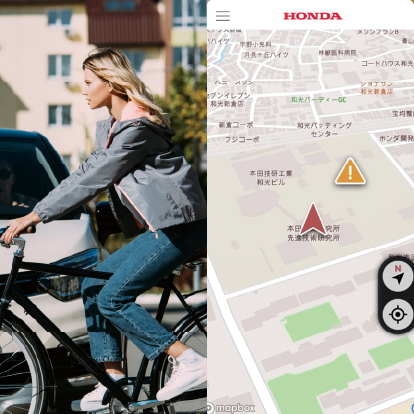 クルマの走行データを元に、注意すべきポイントを地図上に表示。走行中に音でお知らせします。