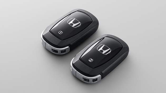販売会社でセッティング(別途セットアップ費用がかかります)されたHondaスマートキーで解錠またはエンジン始動すると、⾃動的にシステムが起動。乗りこむたびに設定する⼿間がなく、いつでも安⼼感を持って運転できます。2個あるキーは、1個ごとに機能オンの設定が可能。キーの区別ができるよう、番号が刻印されています。