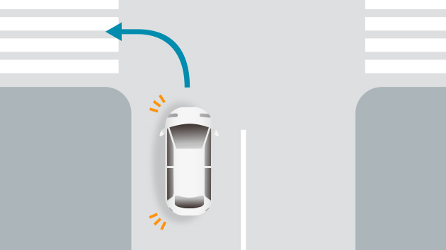 - 歩行者事故低減ステアリングは、約10km/h~約40km/hで走行中、システムが歩行者側への車線逸脱と歩行者との衝突を予測したときに、ステアリング操作による回避を支援します。運転者のステアリング操作に代わるものではありません。運転者が加速やブレーキ操作、急なステアリング操作を行っているとシステムが判断したとき、また、ウインカーを作動させている場合には作動しません。