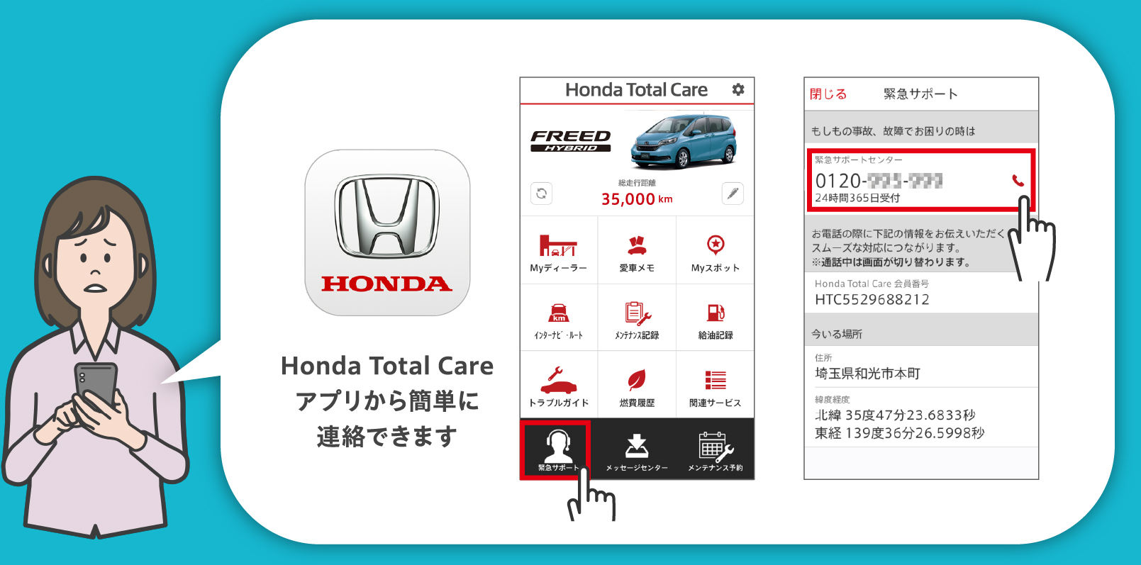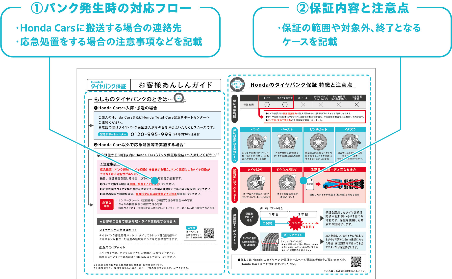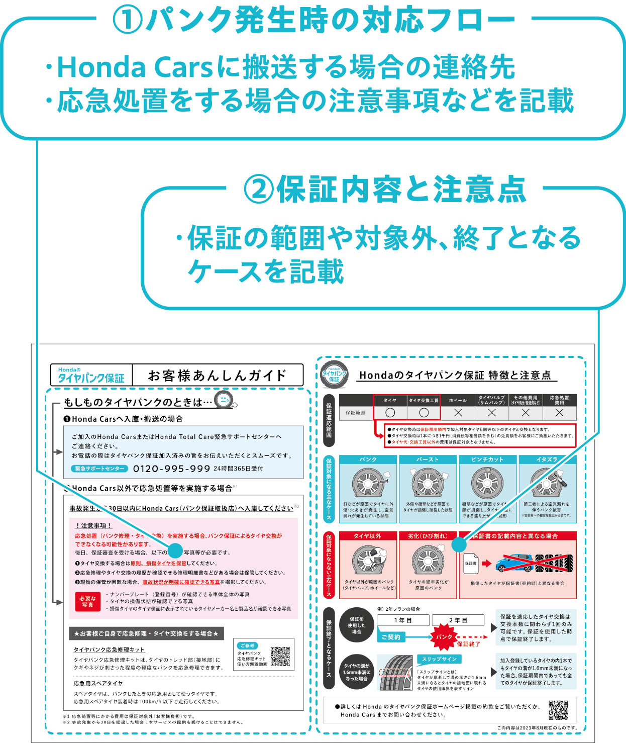 応急処置に留めていただき、後日タイヤパンク保証取扱店舗のHonda Carsへ入庫をお願いします。