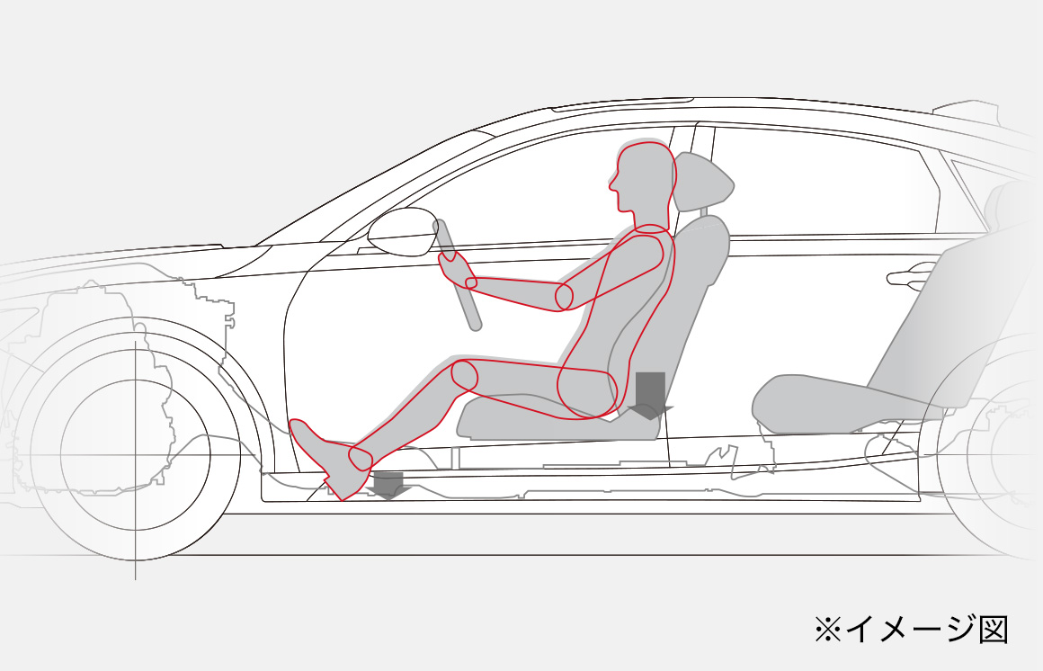 前モデルよりヒップポイントを下げることで、揺れが少なく、疲れを感じにくい着座姿勢とするとともに、よりクルマとの一体感を感じるドライビングポジションを実現。着座位置が下がることで低重心化も実現、パフォーマンスの向上にも貢献しています。